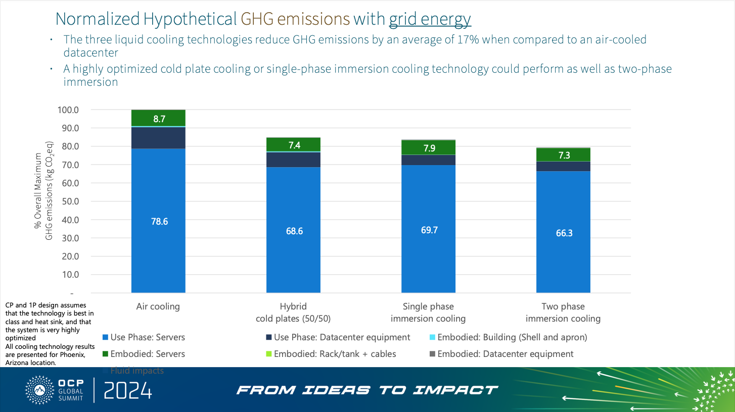 • Depending on local environmental conditions, and the data center’s workload, using liquid cooling in server racks can be up to 17% more carbon-efficient than traditional air cooling.