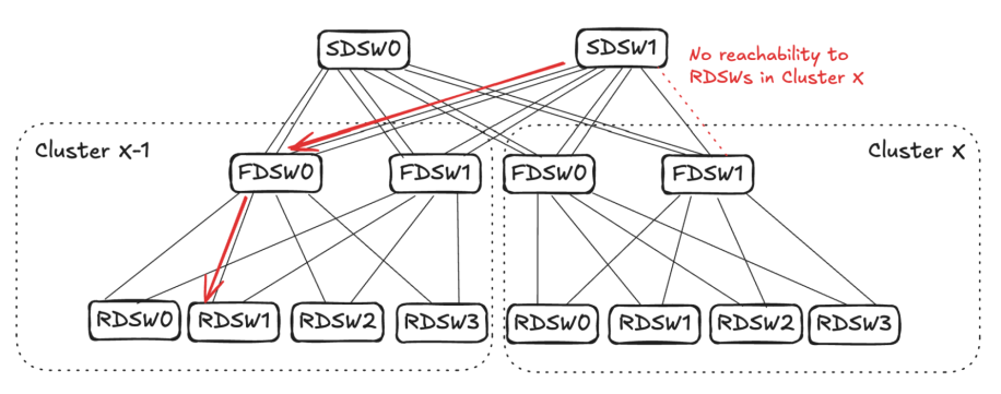 Figure 11: Input Balanced Mode propagation from FDSW0 to RDSW1 in Cluster X-1.