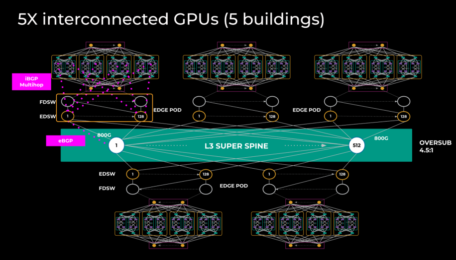 Figure 3: An L3 super spine connecting five DSF L2 zones.