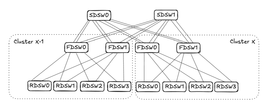 Figure 4: A mini-scale DSF network with two clusters connected by two SDSWs.