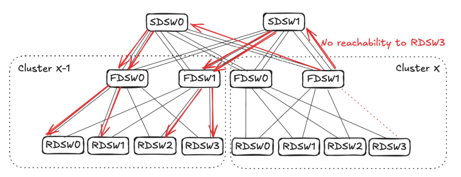 Figure 7: FDSWs in Cluster X-1 stop advertising reachability to RDSWs.