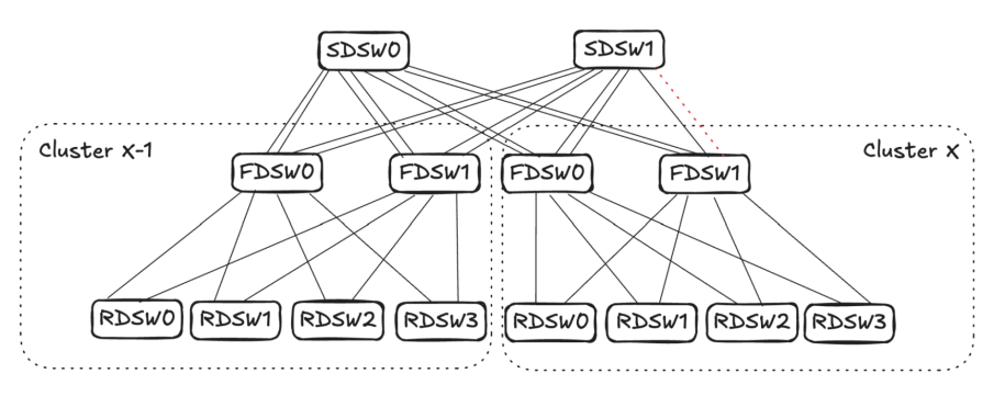 Figure 8: Link Failure between SDSW1 and FDSW1 in Cluster X.